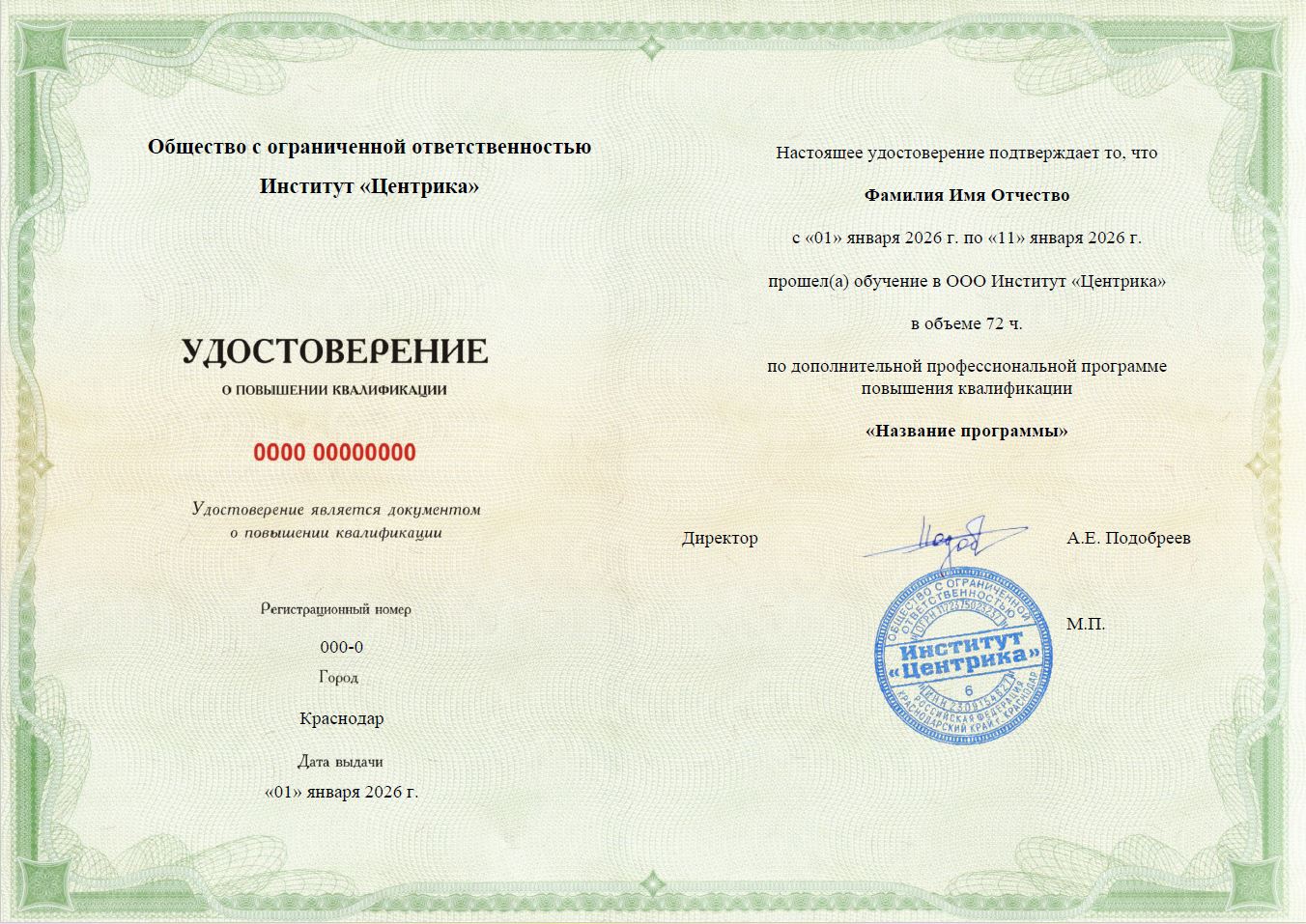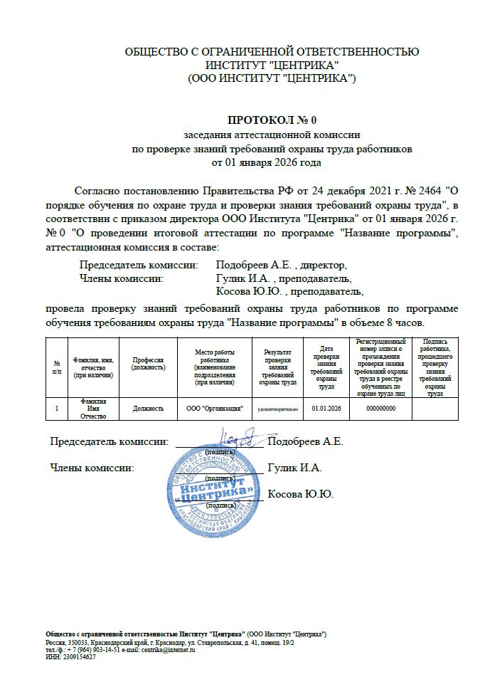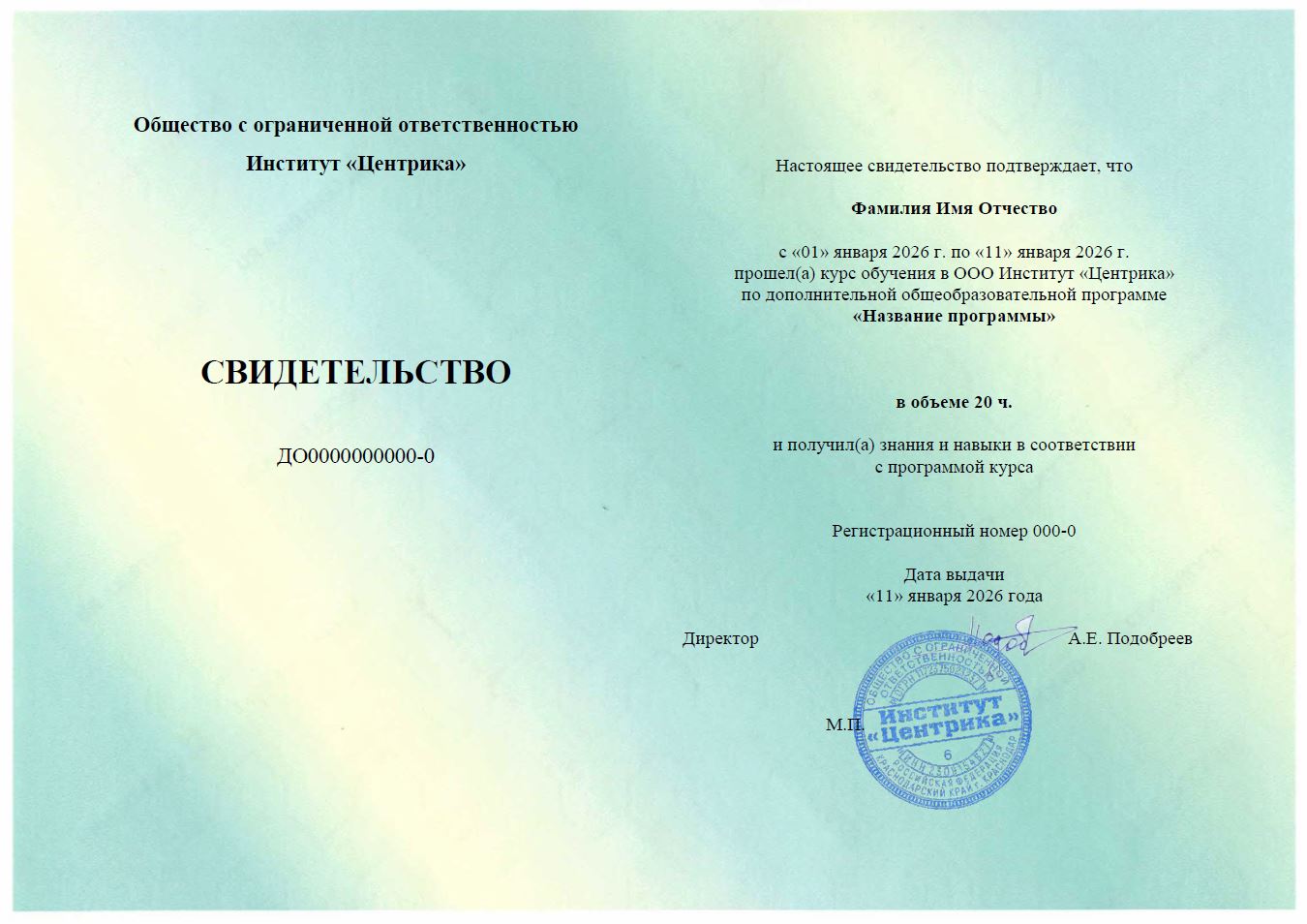 Учебный центр ООО Институт "Центрика" проводит обучение по охране труда, дополнительным профессиональным программам повышения квалификации и профессиональной переподготовки, а также по программам профессионального обучения.